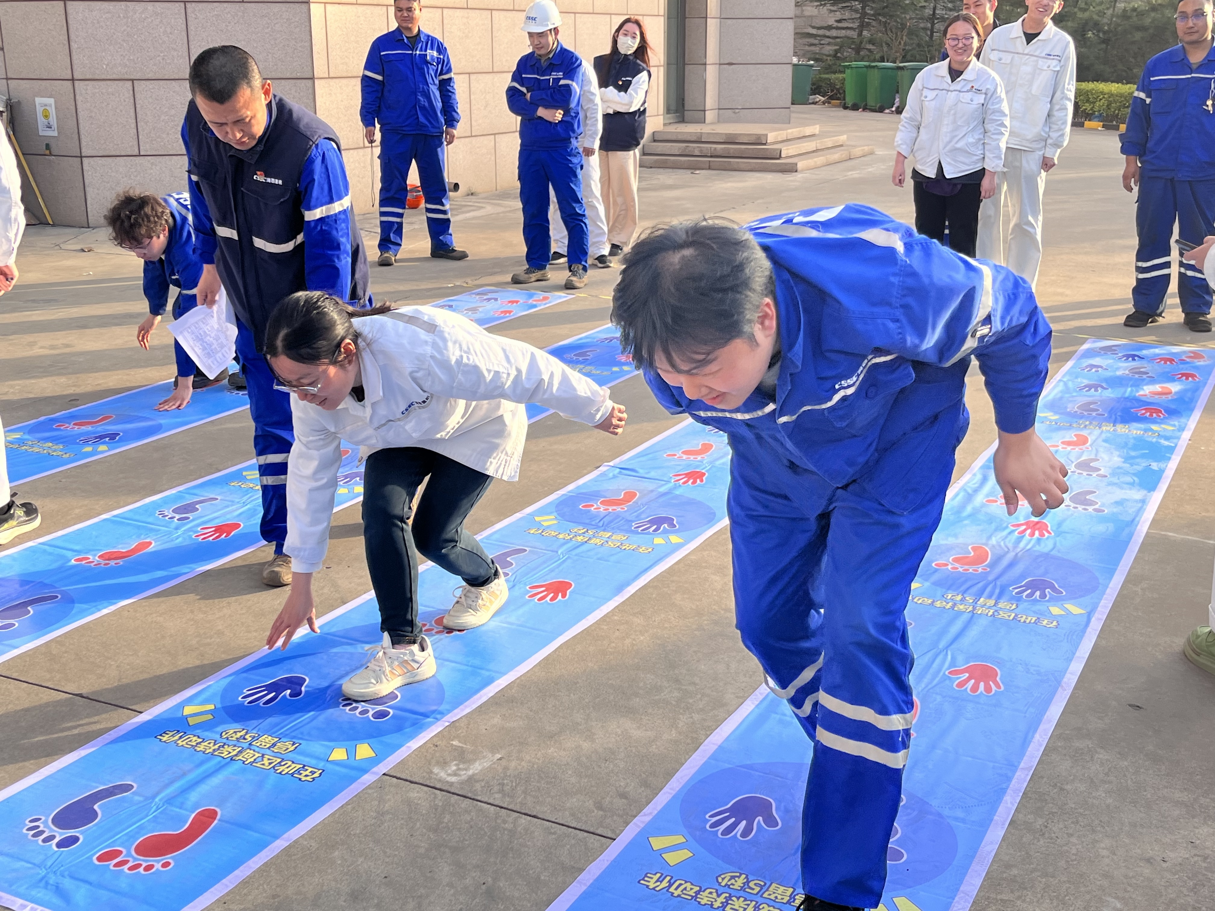備受矚目的“巨人腳步”項目中,港口機械工程所的隊伍以口號統(tǒng)一步伐,如“鋼鐵巨人”般穩(wěn)步沖向終點,展現(xiàn)了驚人的默契?!凹w跳長繩”更是高潮迭起,跳繩隊員的靈活身姿與搖繩者的精準節(jié)奏相得益彰,最后品質管理部以3分鐘完成102次的佳績摘得單項冠軍。技術中心分會的謝士嬌在“摸石過河”中表現(xiàn)搶眼,她巧妙鋪磚、輕盈跨步,為團隊節(jié)省關鍵時間?!拔覀兣驴墒恰畱?zhàn)術擔當’!”她賽后笑稱。