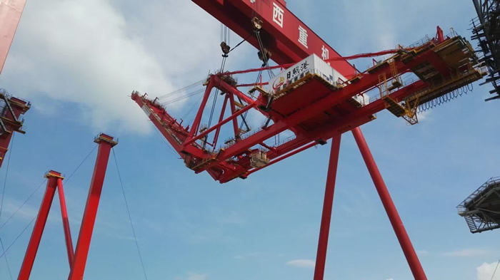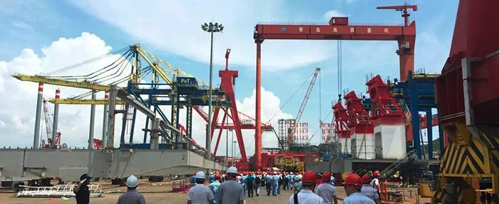 公司生產(chǎn)基地參觀同樣火爆:適逢總裝現(xiàn)場70T-60M岸邊集裝箱起重機(jī)項(xiàng)目整體吊裝, 1600T龍門吊平穩(wěn)吊起850噸的前后大梁、緩緩上升、精準(zhǔn)定位、穩(wěn)穩(wěn)落于該岸橋的門框上,現(xiàn)場高效的安裝工藝,給了在場的400余嘉賓巨大的視覺沖擊,掌聲、贊美聲陣陣不斷。公司整體室內(nèi)噴涂的涂裝工藝、超大型設(shè)備整機(jī)滾裝運(yùn)輸?shù)能浻布?shí)力也讓參觀嘉賓耳目一新。