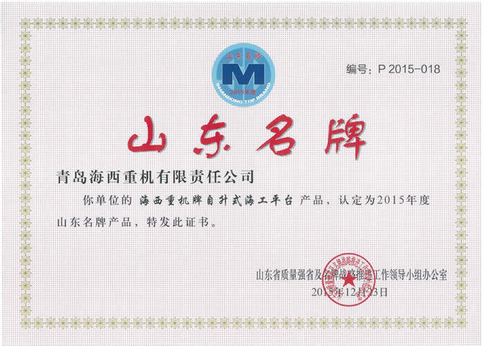 繼青島名牌之后,海西重機(jī)再入名牌榜單,自主研發(fā)制造的自升式海工平臺(tái)喜獲2015年度“山東名牌產(chǎn)品”榮譽(yù)稱號(hào)!