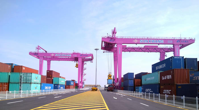 韓國碼頭工作中的自動化軌道吊