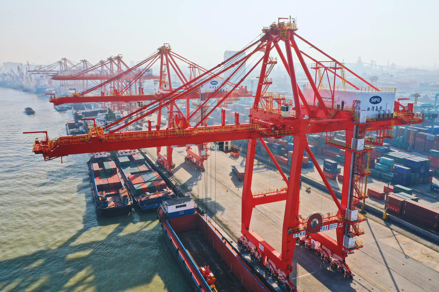 12月18日,海西重機(jī)為上港集團(tuán)宜東集裝箱碼頭分公司制造的2臺(tái)65t-38m岸橋順利交付。