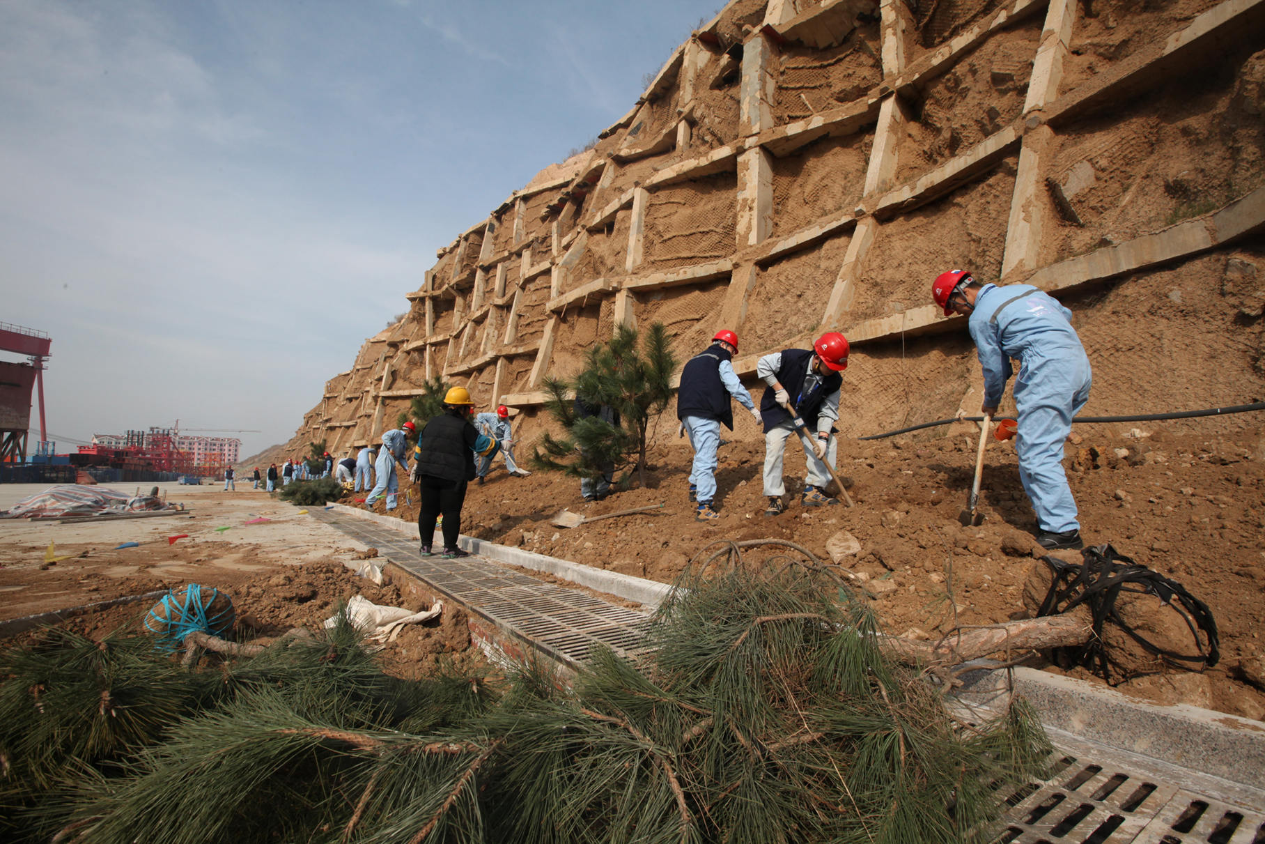 瘠地力挖苗培入,荒坡手植樹皆嘉。三倆人,一棵樹。在廠區(qū)的新建護(hù)坡下,大家熱火朝天的忙著,紛紛揮鍬鏟土,定點挖坑,放苗回填,你扶我植,好不熱鬧。在春天植入希望,我們栽種的不僅是常青樹,更是快樂和責(zé)任。