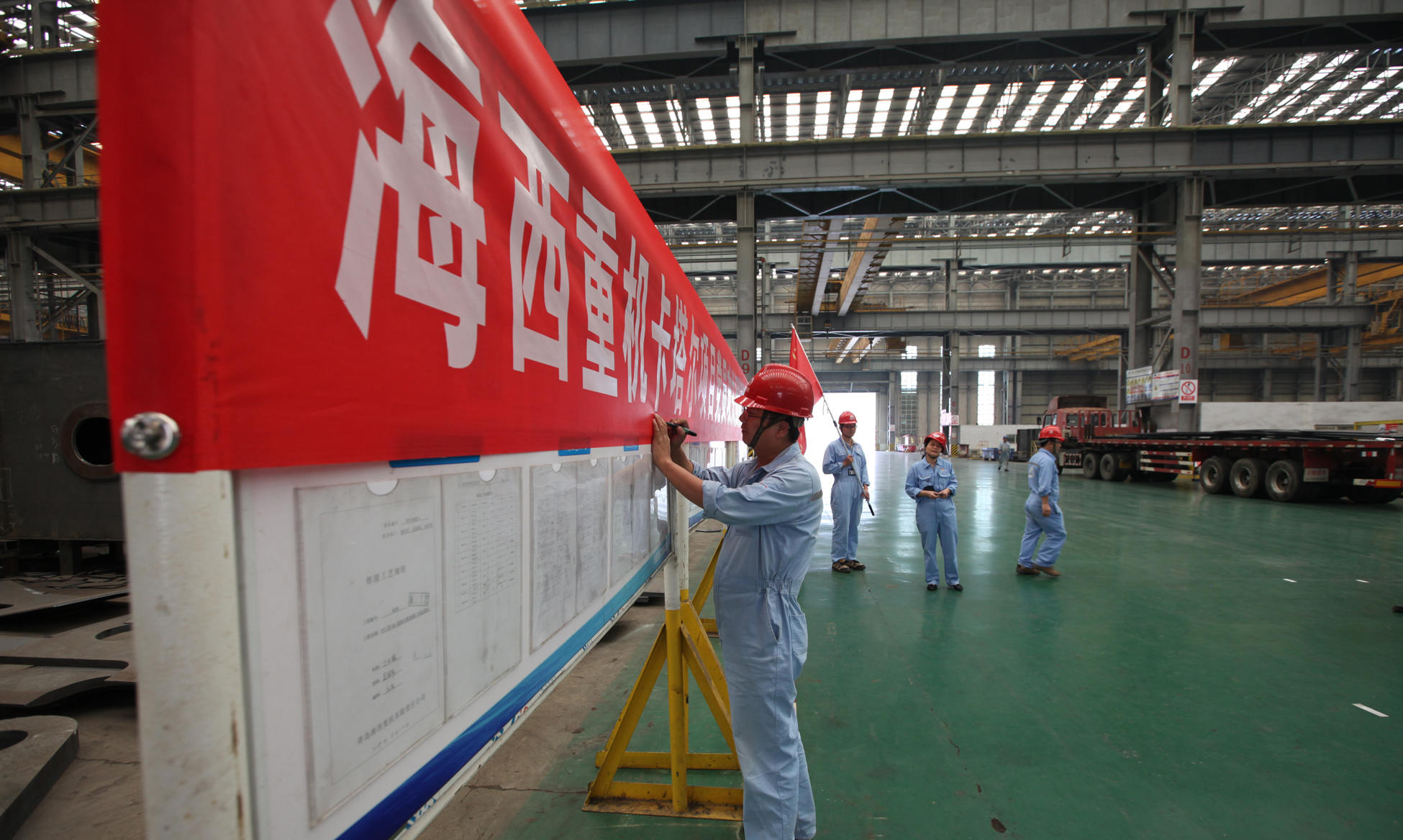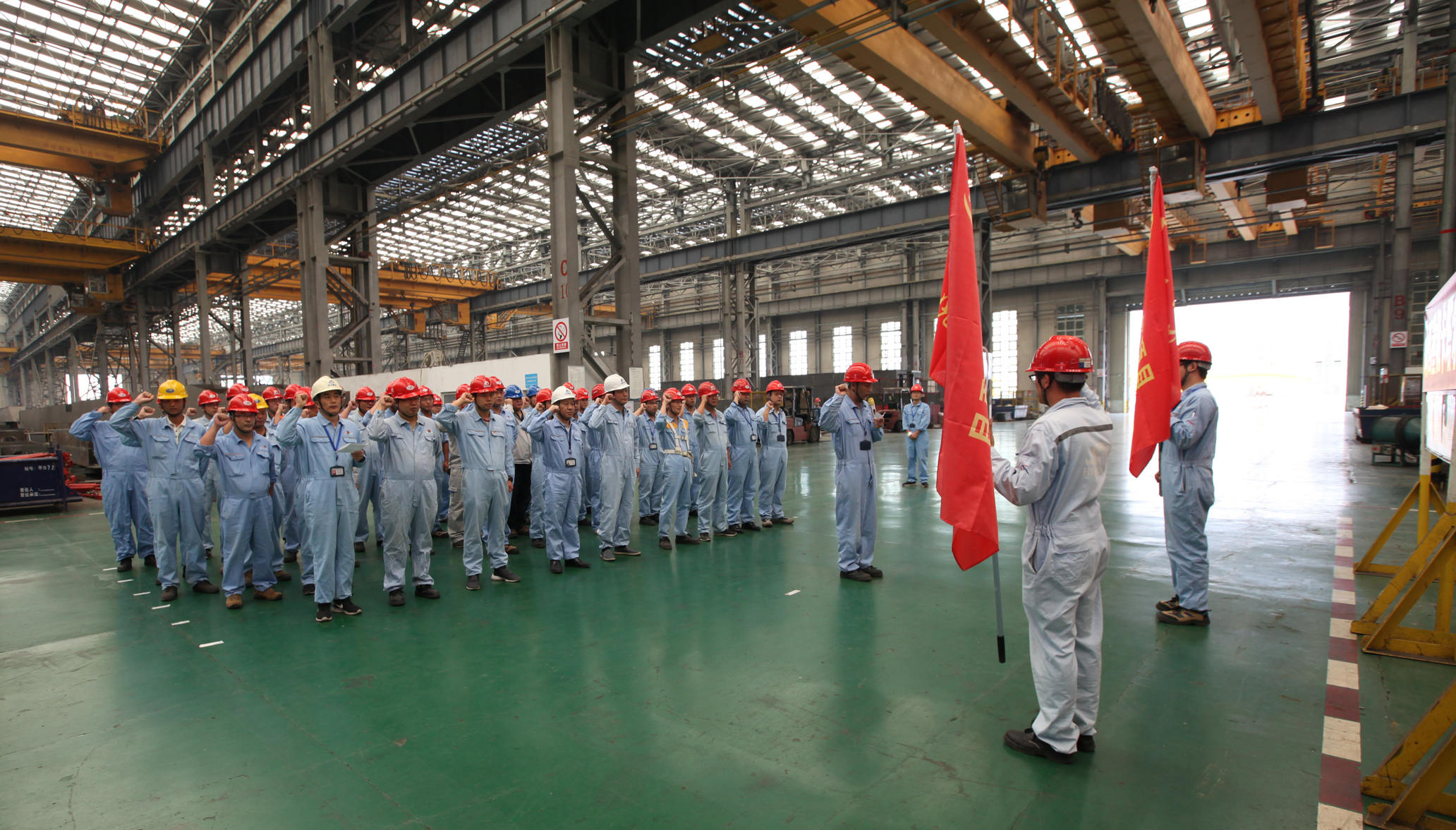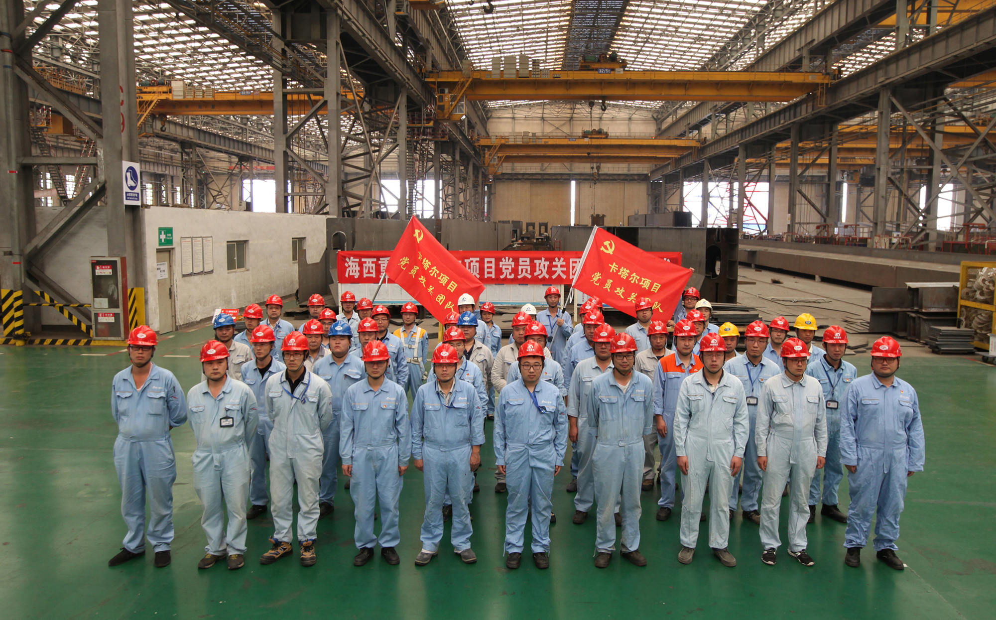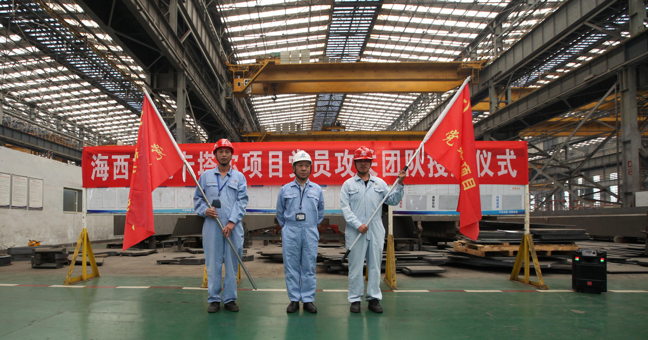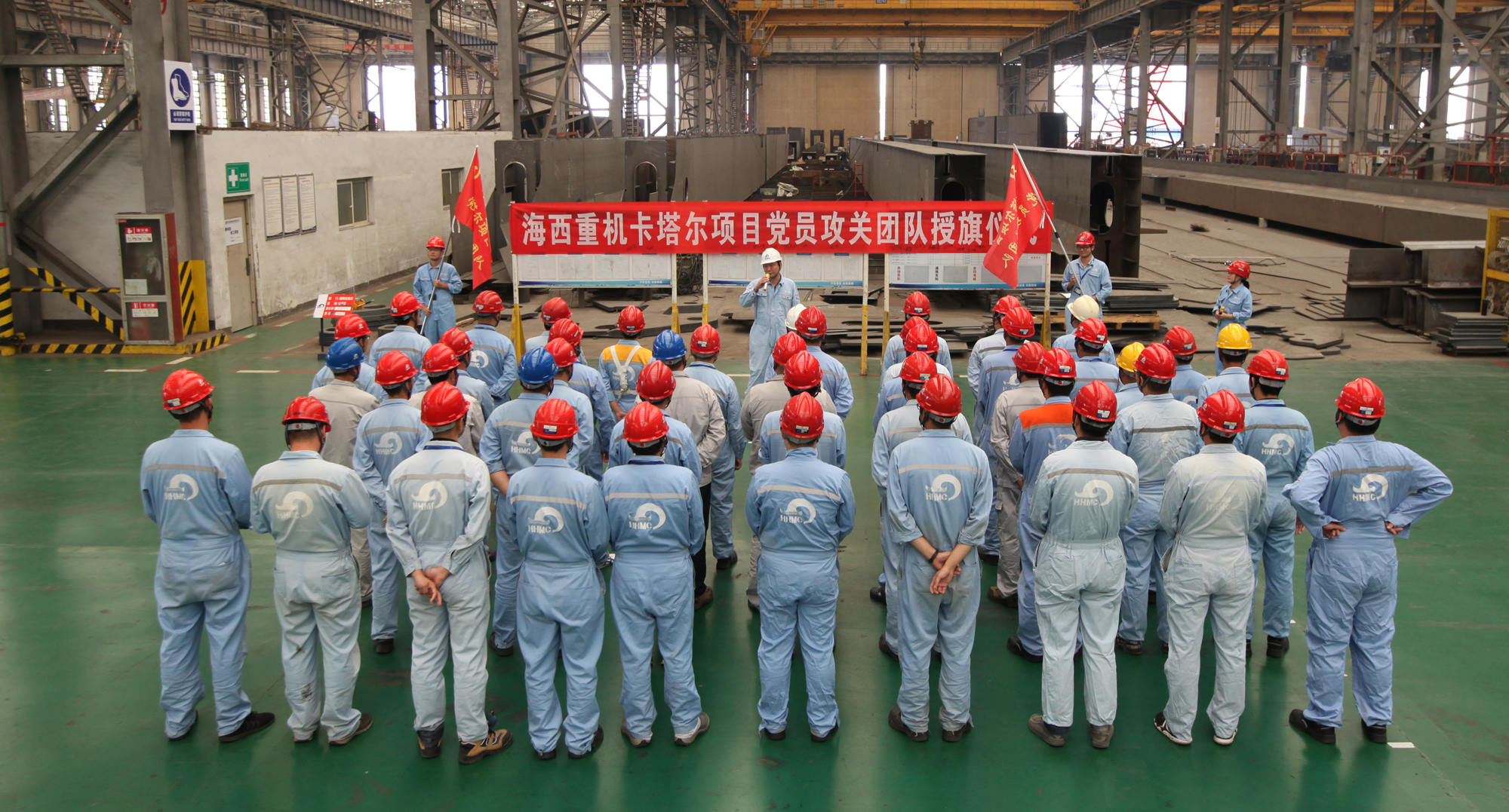 9月20日上午,卡塔爾項(xiàng)目黨員攻關(guān)團(tuán)隊(duì)授旗儀式在海西重機(jī)新鋼結(jié)構(gòu)廠房順利舉行。海西重機(jī)黨委書(shū)記、董事長(zhǎng)鄧振山,黨委副書(shū)記、總經(jīng)理張懷志,黨委副書(shū)記、紀(jì)委書(shū)記朱聲凱,黨員骨干以及施工單位負(fù)責(zé)人等50余人參加本次授旗儀式。