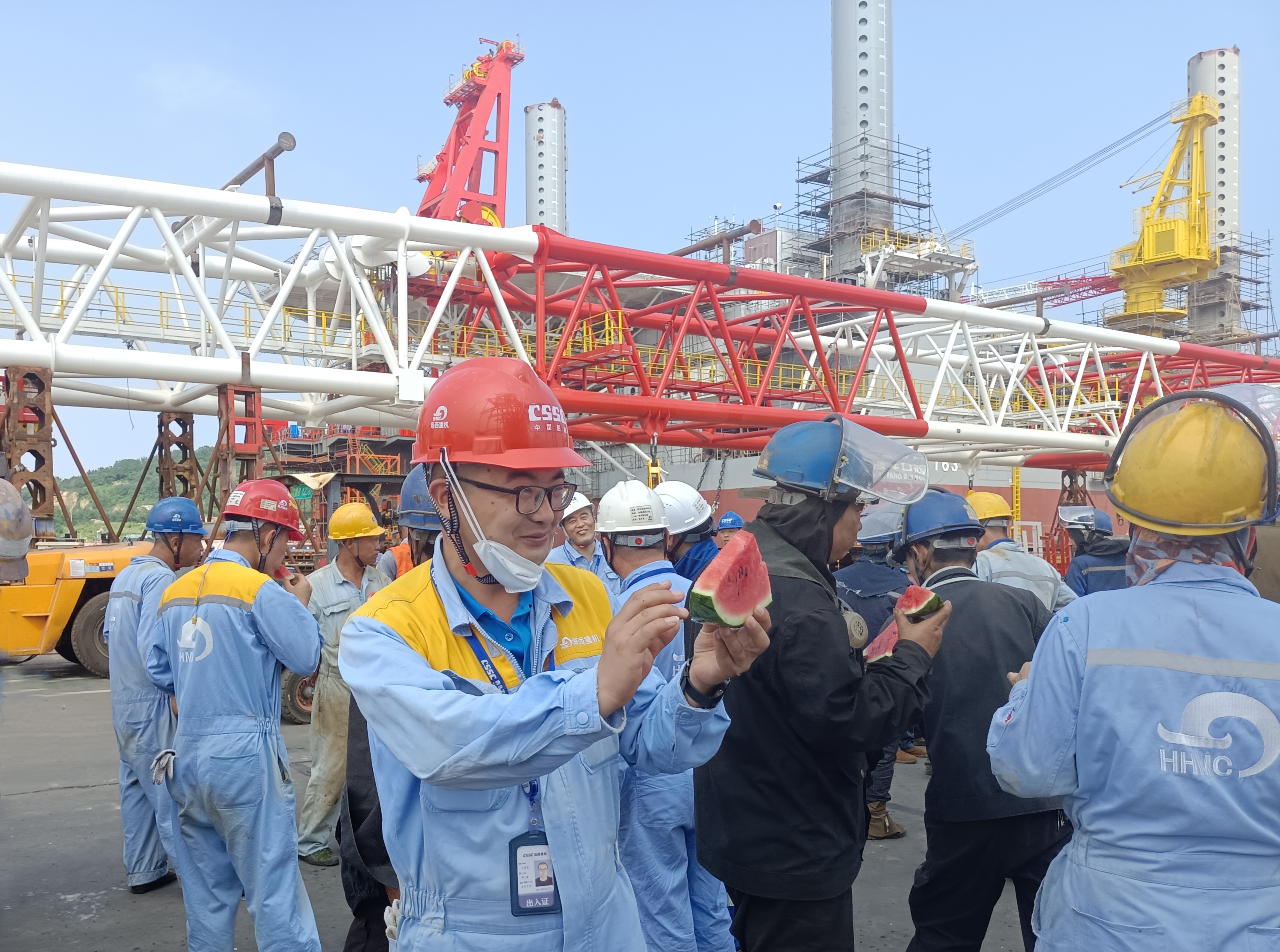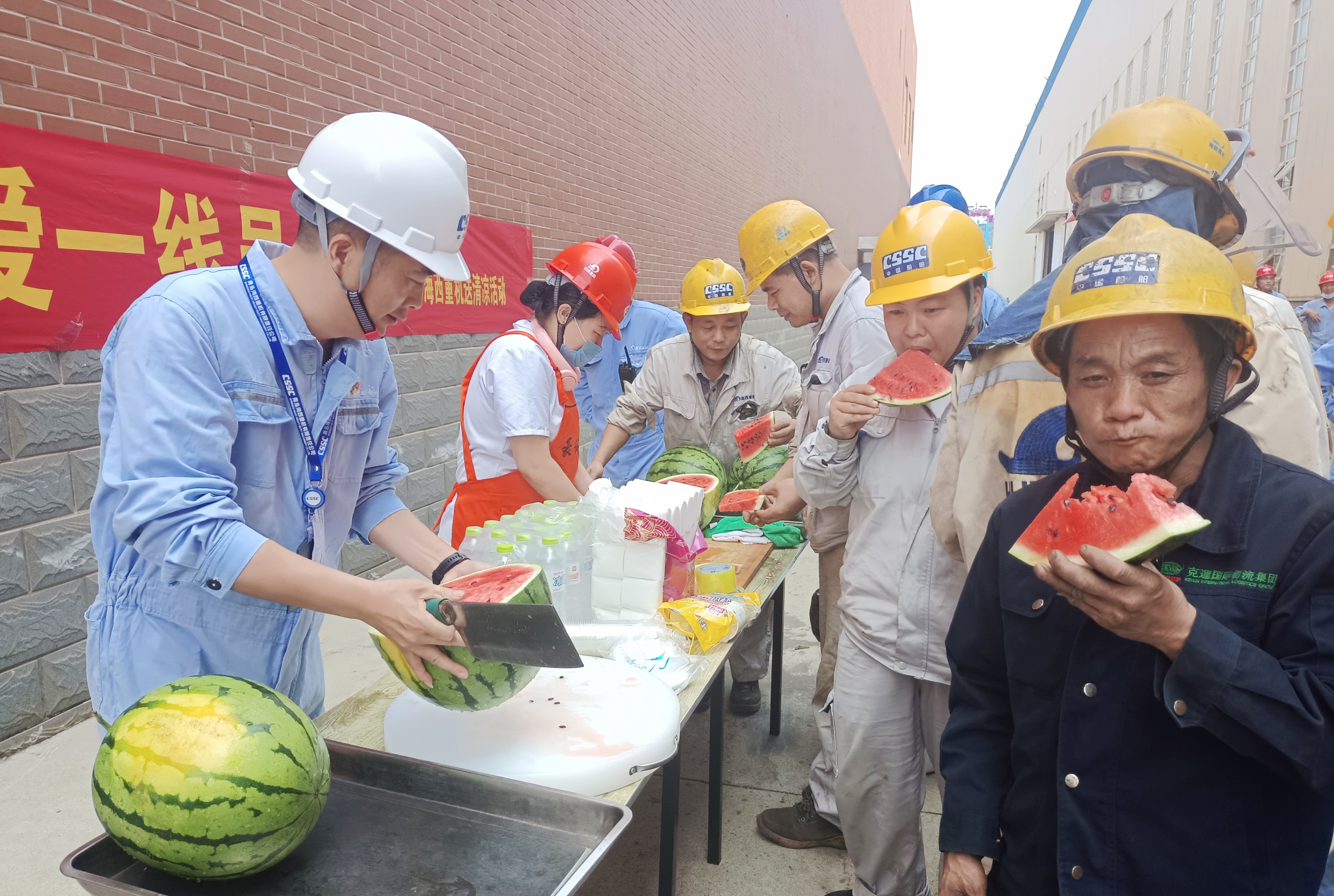 “西瓜真甜,感謝公司的關愛,我們會更加努力,戰(zhàn)酷暑、搶節(jié)點,更好地保障生產?!变摌嬛圃觳眶秆b工人董學輝開心地說到。