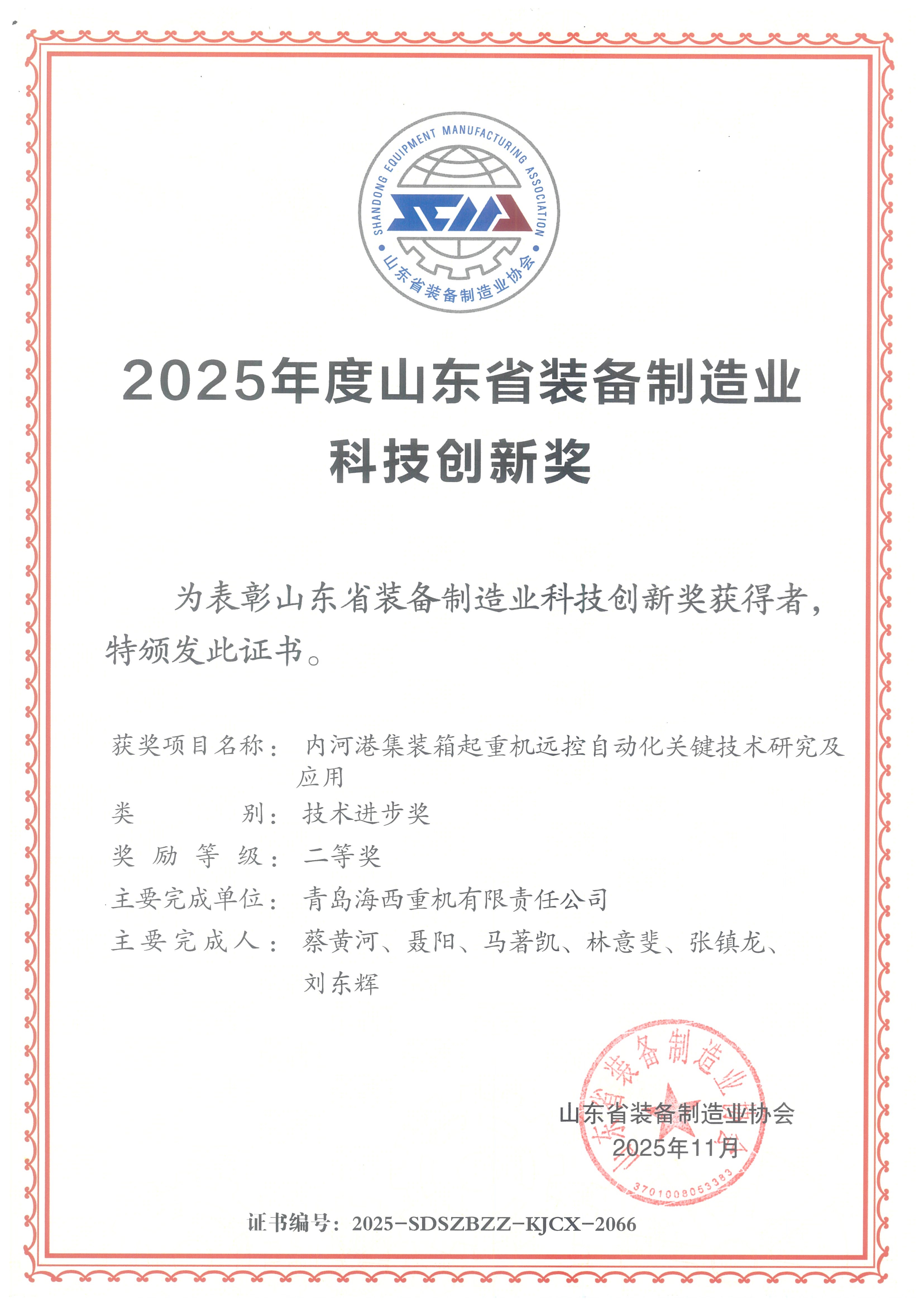 此次獲獎充分體現了海西重機在技術創(chuàng)新方面的實踐和突破。未來,海西重機將以此次獲獎為契機,繼續(xù)加大研發(fā)投入,深化產學研合作,持續(xù)提升核心競爭力,不斷推動行業(yè)高質量發(fā)展,為交通強國、海洋強國建設貢獻力量。