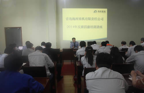 5月22日,海西重機(jī)邀請(qǐng)黃島區(qū)人民檢察院對(duì)口部門(mén),在海西重機(jī)舉辦了2014年反腐倡廉培訓(xùn)講座,公司黨委書(shū)記孫總參加了培訓(xùn)講座。