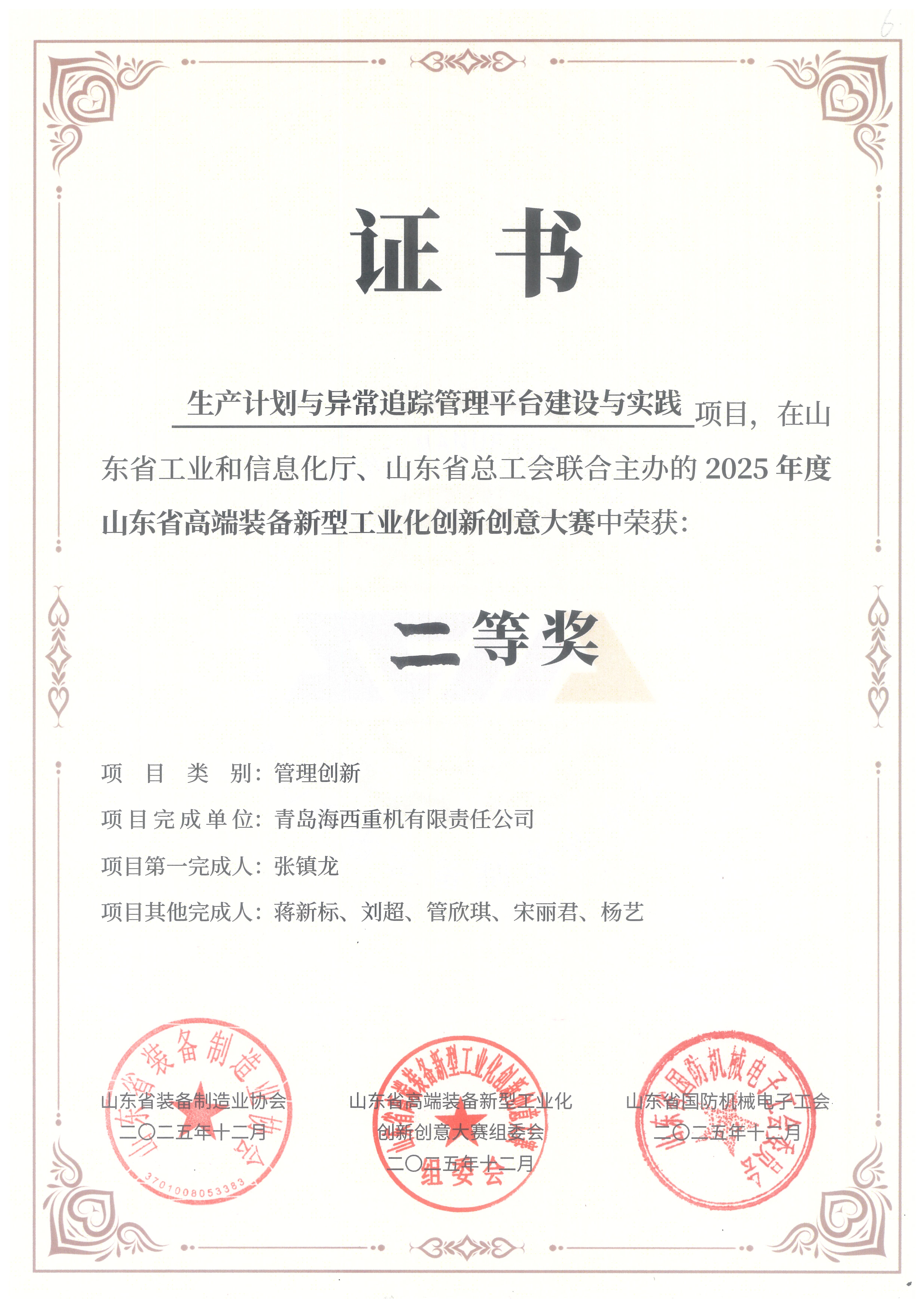 “生產計劃與異常追蹤管理平臺建設與實踐”——管理創(chuàng)新二等獎