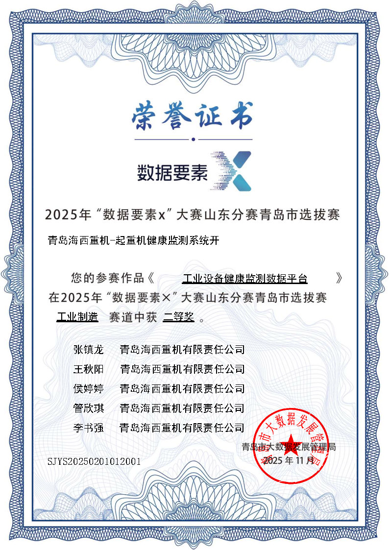 “工業(yè)設備健康監(jiān)測數據平臺”——2025年“數據要素X”大賽山東分賽青島市選拔賽工業(yè)制造賽二等獎
