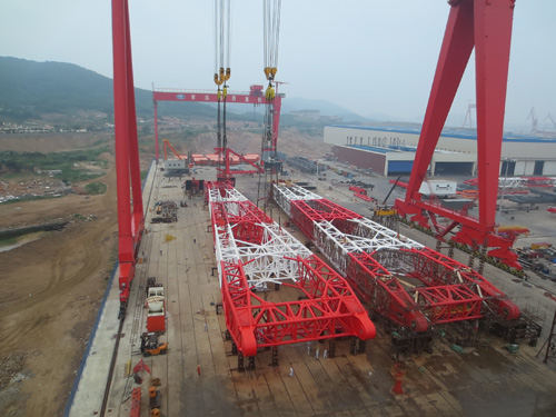 3600t浮式起重機臂架安裝分三步驟,共3吊,都是大噸位、高難度、極具挑戰(zhàn)性的吊裝工況。整個吊裝方案從策劃到定稿歷經(jīng)波折,歷時幾個月,通過技術(shù)人員的反復討論、驗算、核對最終確定,本次臂架吊裝的順利完成充分驗證了吊裝方案制定的準確性和可靠性,對公司后續(xù)吊裝方案的設計積累了寶貴的經(jīng)驗。
